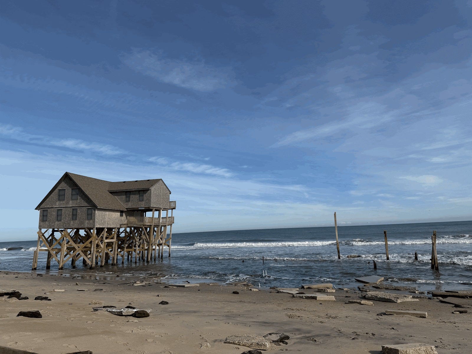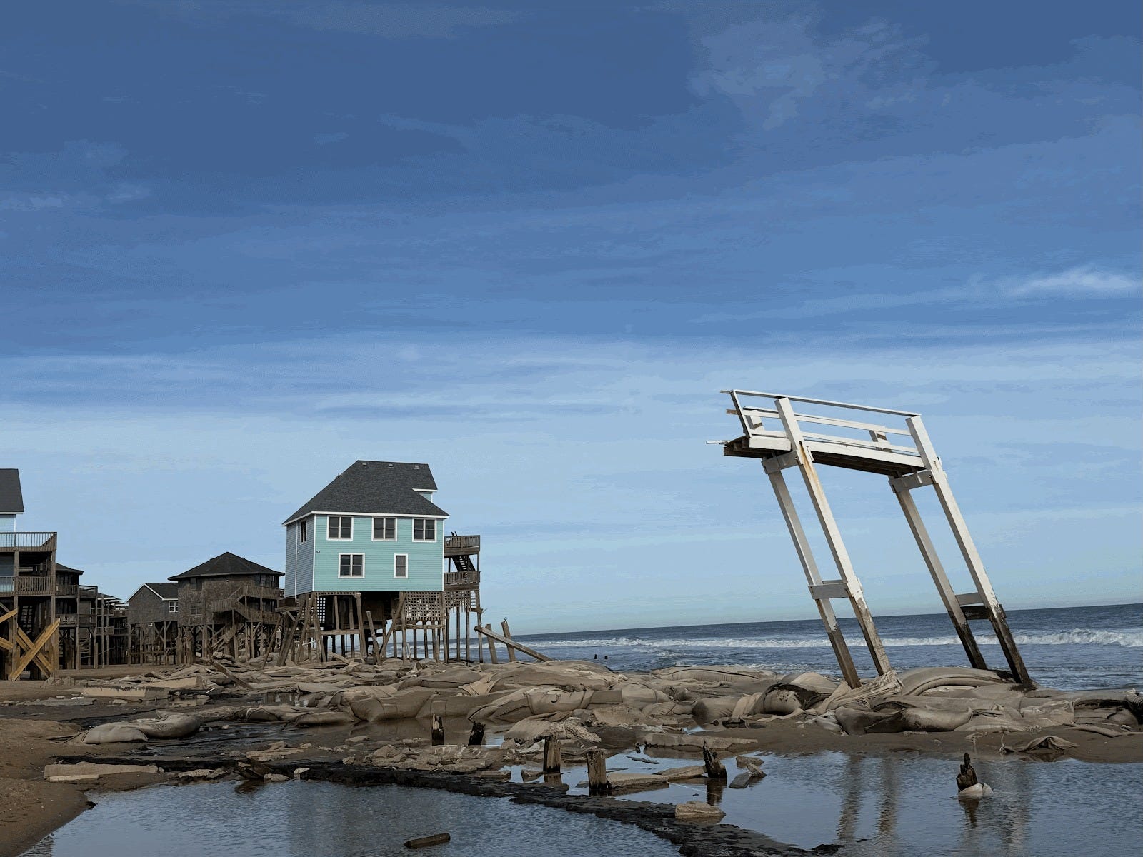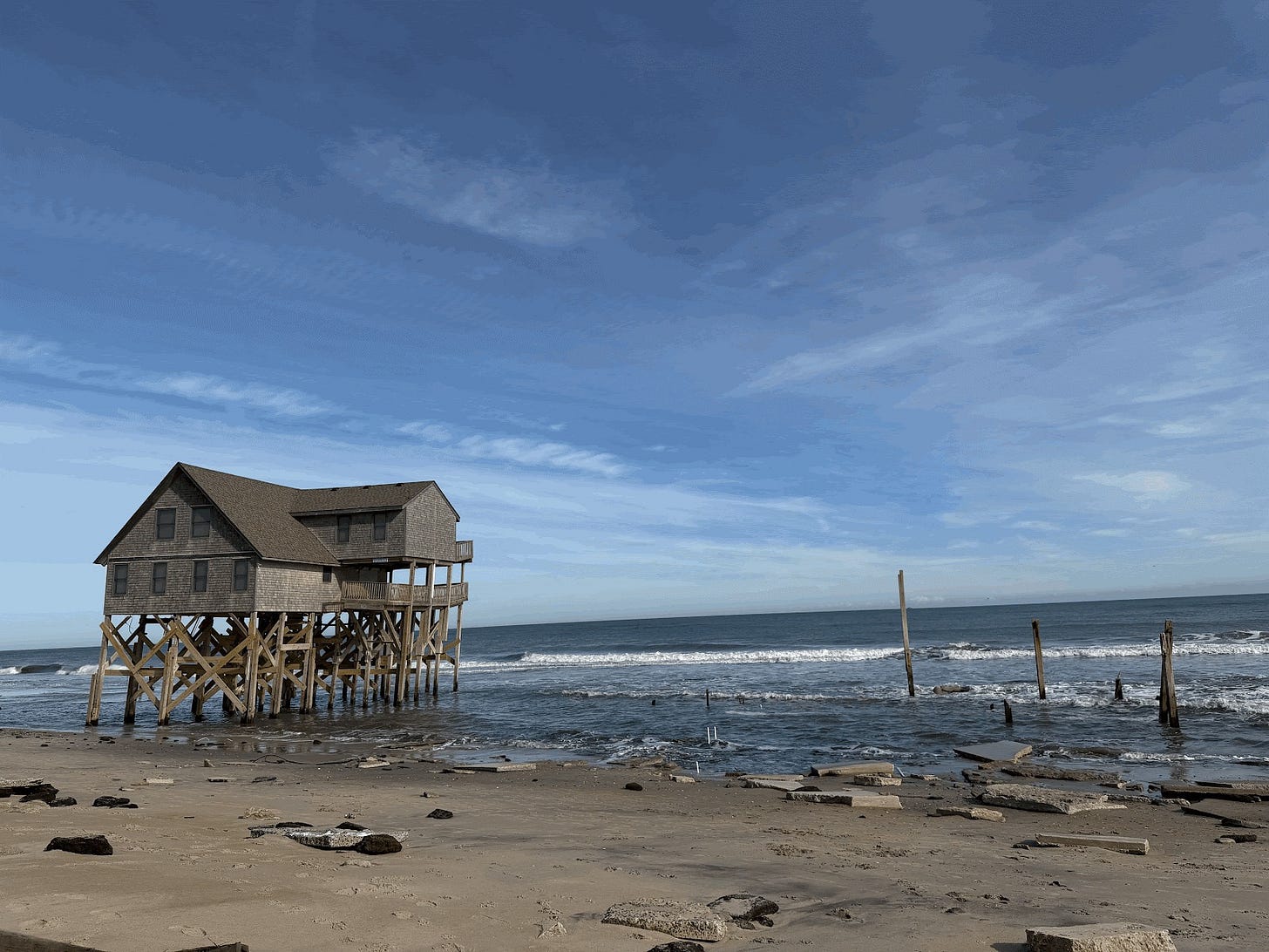 I learned an economic term from New York Times reporter Brooke Jarvis for the homes that now line the beach: “stranded assets” – meaning properties that once held significant value but have become liabilities. While many of the houses appear valuable on paper, their long term fate is clear.